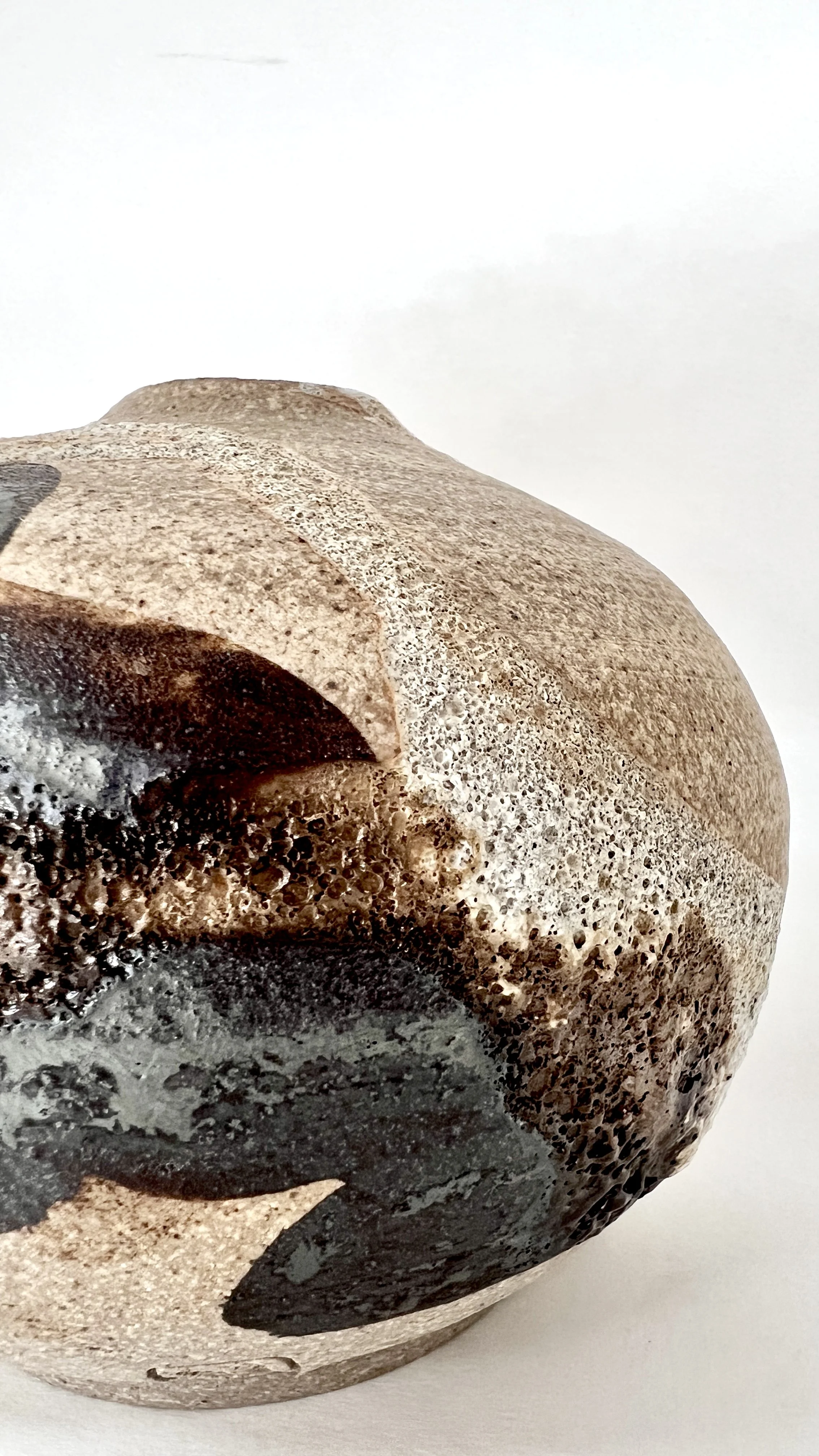 Stoneware, Reduction Fired, Raw Exposed Clay with manganese wash + Volcanic Glaze